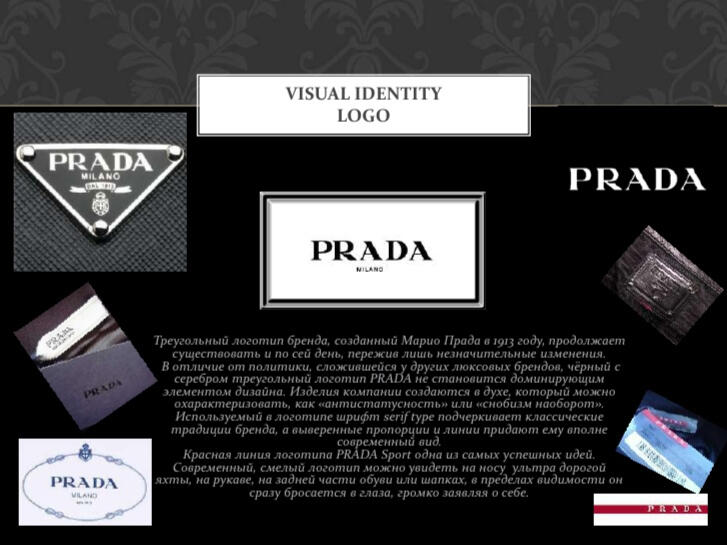 Prada es una firma italiana de moda. Fundada por Mario Prada en 1913 como Fratelli Prada (en italiano: Hermanos Prada), la firma dio un giro radical con la llegada a la gerencia de Miuccia Prada, nieta del fundador, en 1978.